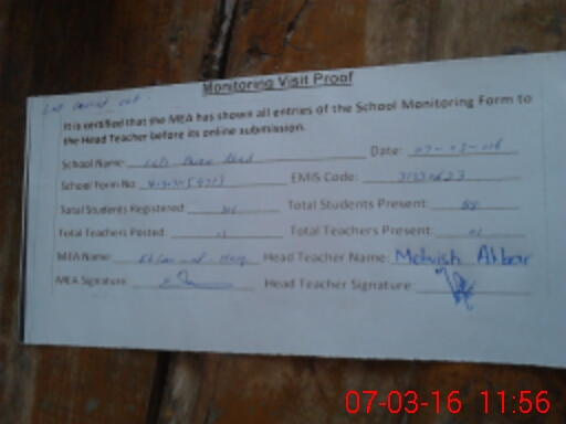 | Certified that this School was Inspected by the Undersigned MEA/DMO Today and the Information Stated Above is as Per Record. | |||||
