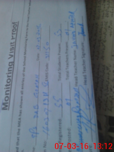 | Certified that this School was Inspected by the Undersigned MEA/DMO Today and the Information Stated Above is as Per Record. | |||||