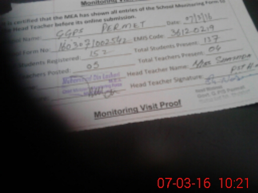 | Attendance Register | Head Teacher | MEA with School | Visit Proof |