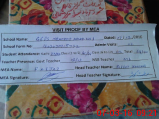 | EMIS Code: 32410259 | Name of School: GGPS MEHMOOD ABAD NO.1 | |||