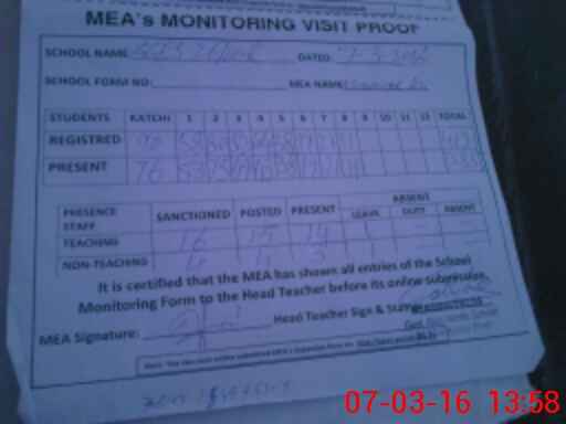 | Attendance Register | Head Teacher | MEA with School | Visit Proof |