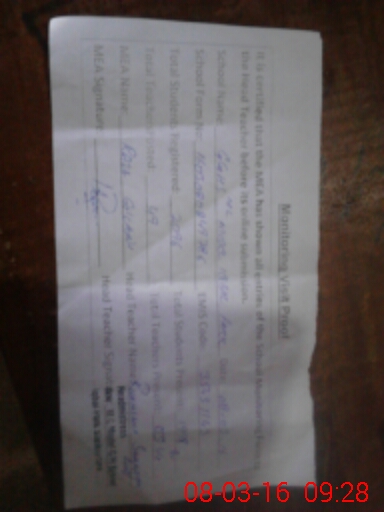 | Attendance Register | Head Teacher | MEA with School | Visit Proof |