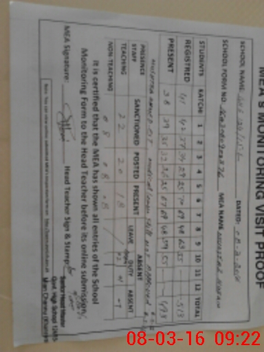 | Attendance Register | Head Teacher | MEA with School | Visit Proof |