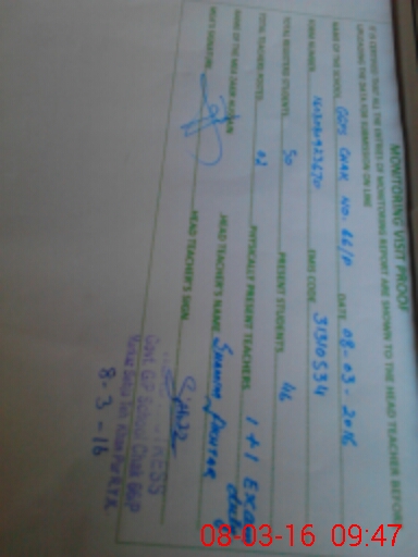 | Monitoring Date: 08-03-2016 | Start Time: 08-03-2016 09:23 AM | End Time: 08-03-2016 09:49 AM | Name of MEA: Za**** Hu**** | |