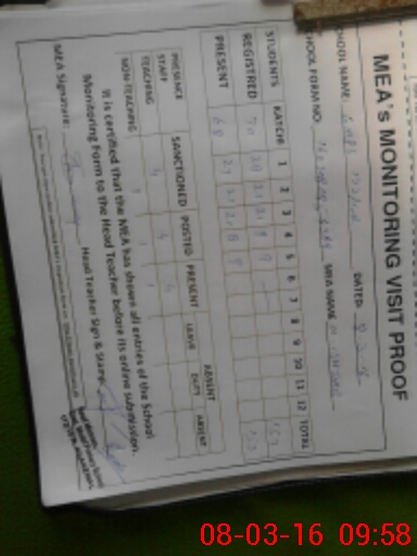 | Attendance Register | Head Teacher | MEA with School | Visit Proof |