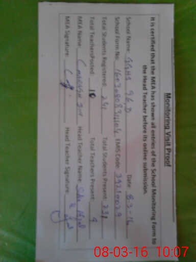 | Certified that this School was Inspected by the Undersigned MEA/DMO Today and the Information Stated Above is as Per Record. | |||||