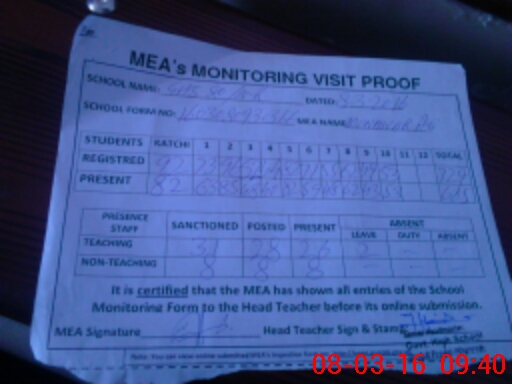 | Attendance Register | Head Teacher | MEA with School | Visit Proof |