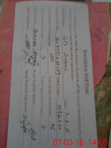 | EMIS Code: 35440420 | Name of School: GPS DHOOL P/O KOT MAHMOOD | |||