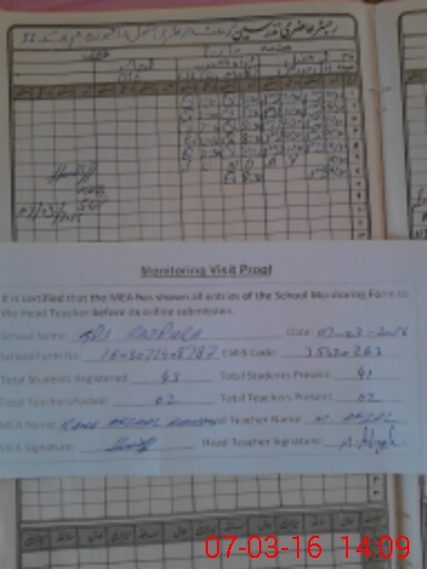 | Certified that this School was Inspected by the Undersigned MEA/DMO Today and the Information Stated Above is as Per Record. | |||||