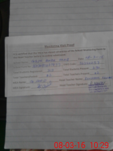 | Certified that this School was Inspected by the Undersigned MEA/DMO Today and the Information Stated Above is as Per Record. | |||||