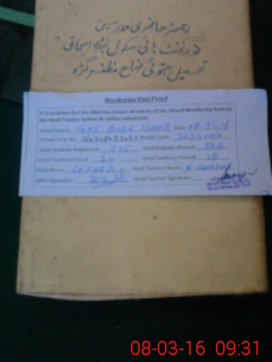 | Attendance Register | Head Teacher | MEA with School | Visit Proof |
