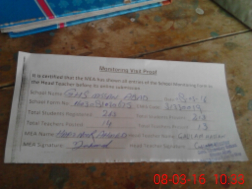 | EMIS Code: 31330019 | Name of School: GHS MISSAN ABAD | |||