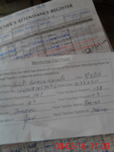 | Attendance Register | Head Teacher | MEA with School | Visit Proof |