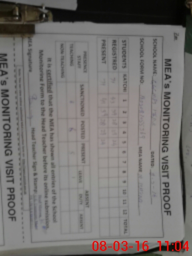 | Attendance Register | Head Teacher | MEA with School | Visit Proof |