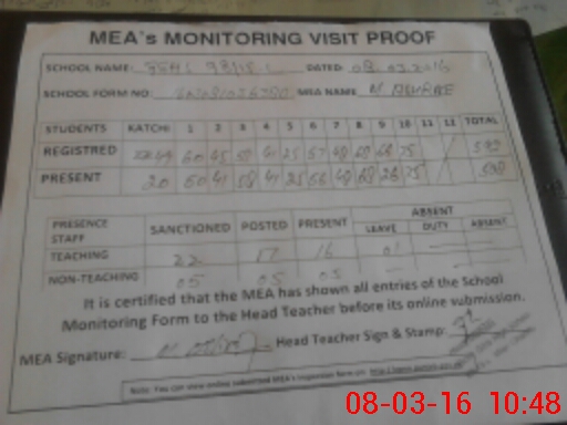 | Certified that this School was Inspected by the Undersigned MEA/DMO Today and the Information Stated Above is as Per Record. | |||||