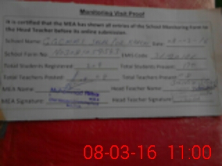 | Attendance Register | Head Teacher | MEA with School | Visit Proof |