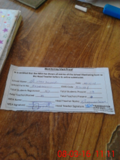 | Attendance Register | Head Teacher | MEA with School | Visit Proof |