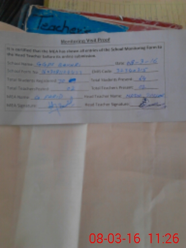 | Attendance Register | Head Teacher | MEA with School | Visit Proof |