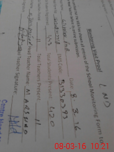 | Monitoring Date: 08-03-2016 | Start Time: 08-03-2016 09:49 AM | End Time: 08-03-2016 10:35 AM | Name of MEA: Mu**** Ja**** An**** | |