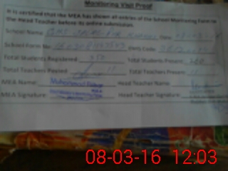 | Certified that this School was Inspected by the Undersigned MEA/DMO Today and the Information Stated Above is as Per Record. | |||||
