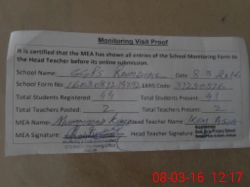 | Certified that this School was Inspected by the Undersigned MEA/DMO Today and the Information Stated Above is as Per Record. | |||||