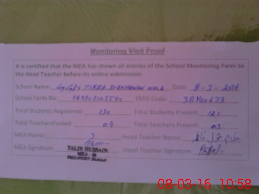 | Certified that this School was Inspected by the Undersigned MEA/DMO Today and the Information Stated Above is as Per Record. | |||||