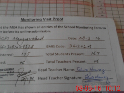 | Certified that this School was Inspected by the Undersigned MEA/DMO Today and the Information Stated Above is as Per Record. | |||||