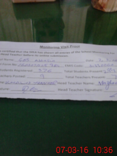 | EMIS Code: 31330060 | Name of School: GHS MC ABBASI MILLS AREA | |||