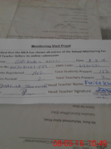 | Certified that this School was Inspected by the Undersigned MEA/DMO Today and the Information Stated Above is as Per Record. | |||||