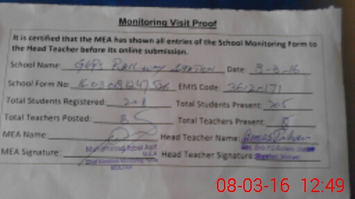 | Certified that this School was Inspected by the Undersigned MEA/DMO Today and the Information Stated Above is as Per Record. | |||||