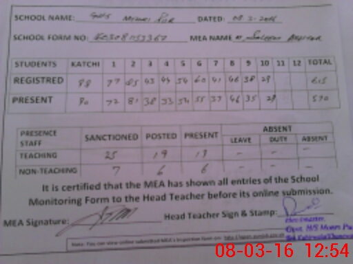| Attendance Register | Head Teacher | MEA with School | Visit Proof |