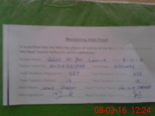 | Attendance Register | Head Teacher | MEA with School | Visit Proof |