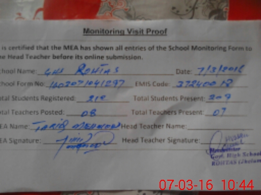 | EMIS Code: 37240018 | Name of School: GHS ROHTAS | |||
