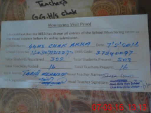 | EMIS Code: 37240097 | Name of School: GGHS CHAK AKKA | |||