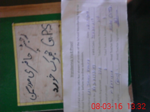 | EMIS Code: 35620613 | Name of School: GPS JHOK KHURD CHAK NO. 14/RB | |||