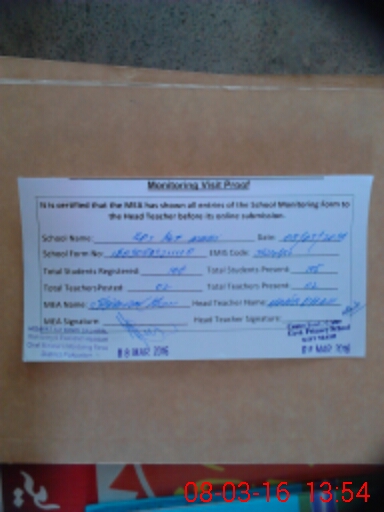 | Attendance Register | Head Teacher | MEA with School | Visit Proof |