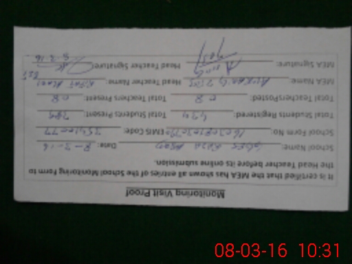 | Attendance Register | Head Teacher | MEA with School | Visit Proof |