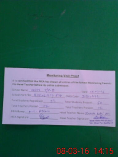 | Certified that this School was Inspected by the Undersigned MEA/DMO Today and the Information Stated Above is as Per Record. | |||||