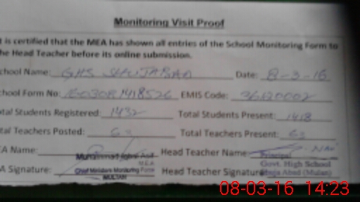 | EMIS Code: 36120002 | Name of School: GHS SHUJABAD | |||