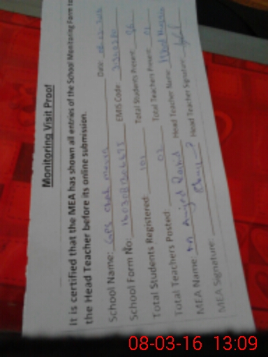 | Certified that this School was Inspected by the Undersigned MEA/DMO Today and the Information Stated Above is as Per Record. | |||||