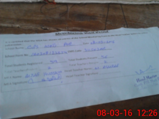 | Attendance Register | Head Teacher | MEA with School | Visit Proof |