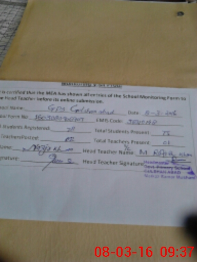 | EMIS Code: 38310148 | Name of School: GPS GULSHAN ABAD PO KAMAR MUSHANI | |||