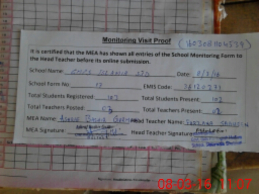 | Attendance Register | Head Teacher | MEA with School | Visit Proof |