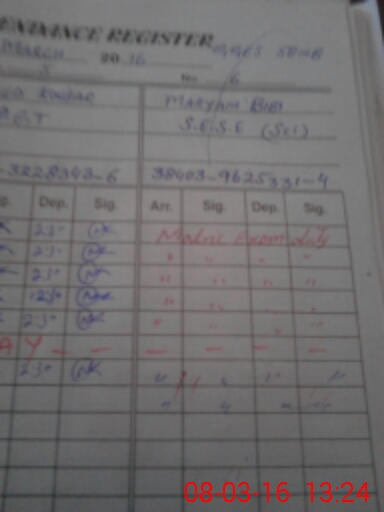 | 38**** | Ma**** Bi**** | S.E.S.E.(SCIENCE) | 1 | 1 | 0 | 0 | 0 | 0 | 0 | 0 | 1 | Exam Duty | |