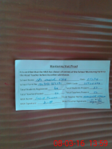 | Attendance Register | Head Teacher | MEA with School | Visit Proof |