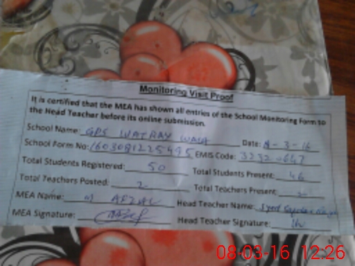 | EMIS Code: 32320647 | Name of School: GPS WATRAY WALA | |||