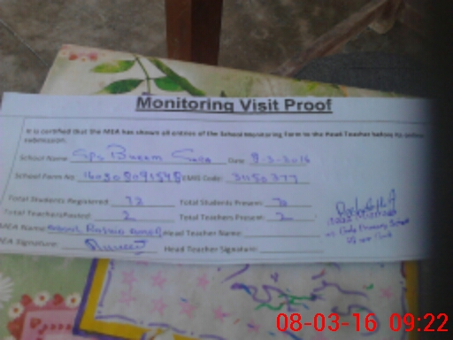 | Attendance Register | Head Teacher | MEA with School | Visit Proof |