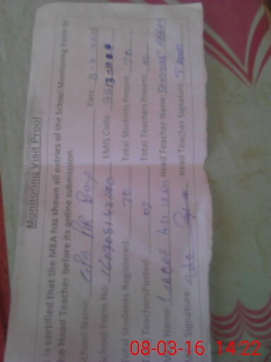 | Attendance Register | Head Teacher | MEA with School | Visit Proof |