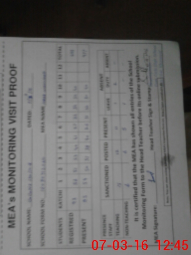 | Certified that this School was Inspected by the Undersigned MEA/DMO Today and the Information Stated Above is as Per Record. | |||||