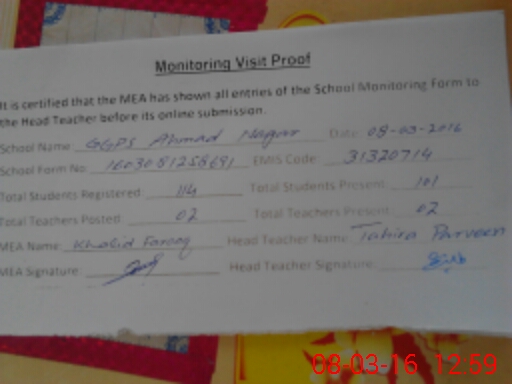 | Certified that this School was Inspected by the Undersigned MEA/DMO Today and the Information Stated Above is as Per Record. | |||||